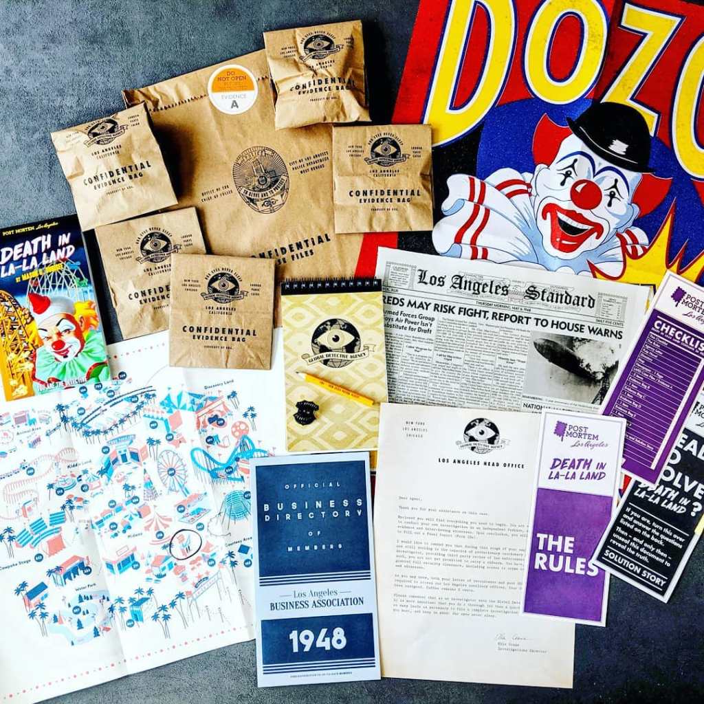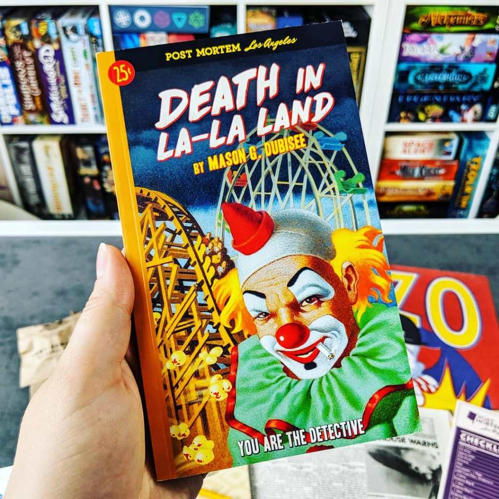 Post Mortem LA: Death in La La Land is not your traditional board game, it’s not even a escape room type game, but it is a tabletop game in that we sat at the table to play it so I guess it counts?
