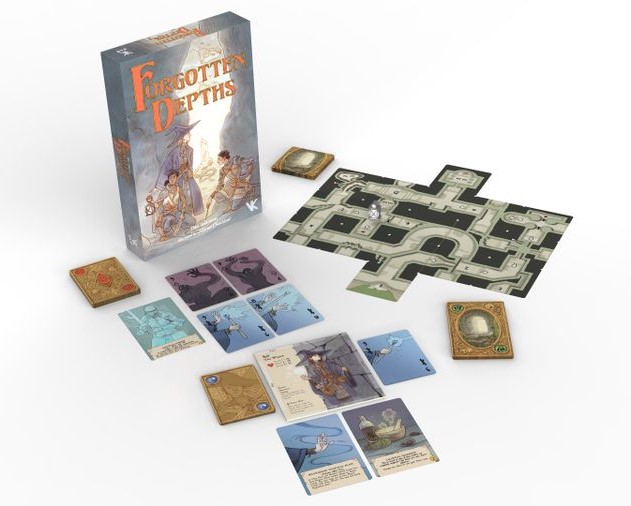 Forgotten Depths is a 1 – 3 player co-operative dungeon crawler game from Void Knight where you will explore the dungeon through tile laying and face a variety of encounters from treasure chests to monsters!